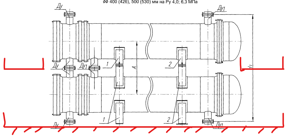 Например, если на уровне земли стоит ряд кожухотрубчатых теплообменников, а над ними стоит еще один ряд кожухотрубчатых теплообменников, то верхний ряд должен стоять на «глухом» перекрытии. Соответственно вся обвязка верхнего ряда теплообменников будет также находится на данном перекрытии.