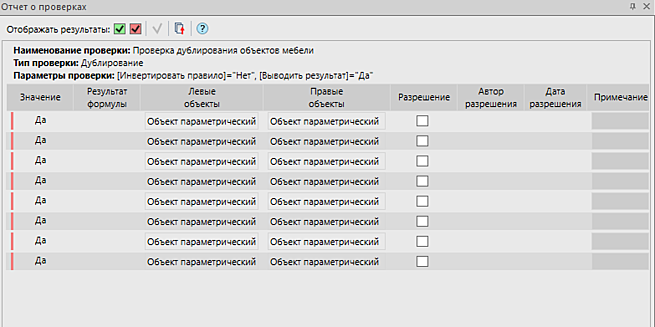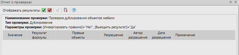 Рис. 21. Отчет о проверке дублирования для объектов мебели