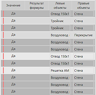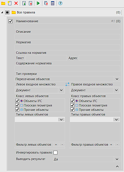 - Входит в – проверяет предположение о том, что левый объект входит в правый согласно структуре IFC либо наоборот – правый объект входит в левый, если установлена галочка Обменять левые с правыми.