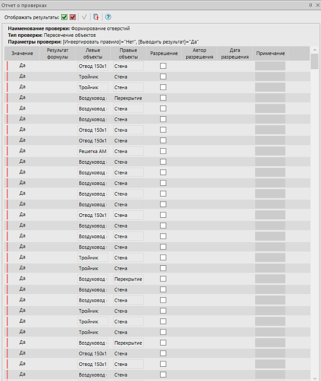 Рис. 15. Отчет о проверке на пересечение объектов