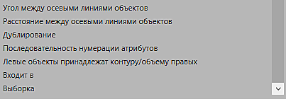 - Угол между осевыми линиями объектов – проверка выполняется только для объектов, содержащих осевую линию.