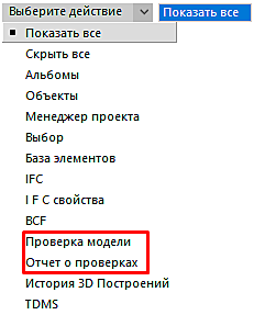 При активации команды открывается контекстное меню со списком вкладок, которые можно открыть в этой конфигурации программы. В статье нас интересуют вкладки Проверка модели и Отчет о проверках (рис. 6)