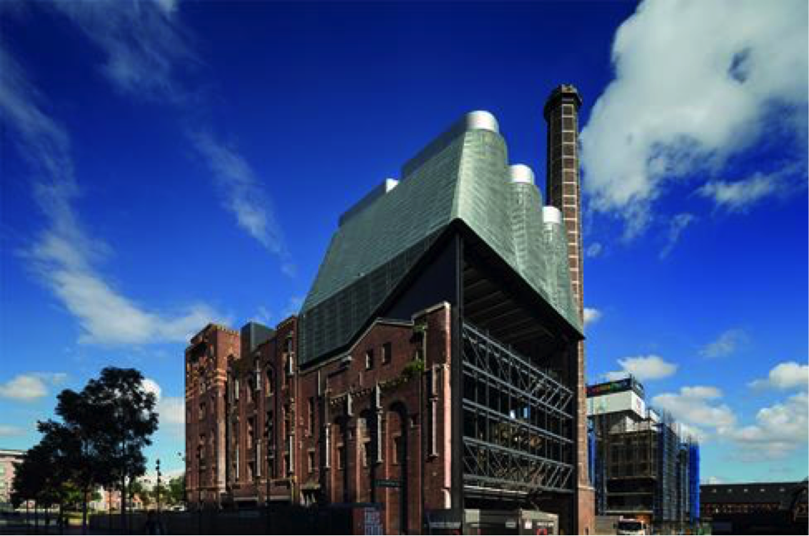 III. Проектирование в городском контексте требует акцентирования безопасности технологического процесса производства. Наличие очистных установок, фильтров и прочего оснащения может быть подчеркнуто архитектурными средствами. Так в здании пивоварни «The Brewery Yard», Сидней, Австралия (рис. 7а), охлаждающие установки и очистные сооружения вынесены над историческим зданием производства, создавая яркий контраст и привлекая внимание к необычному сооружению.энергетические затраты, но и создает более комфортную среду для работников предприятия.
