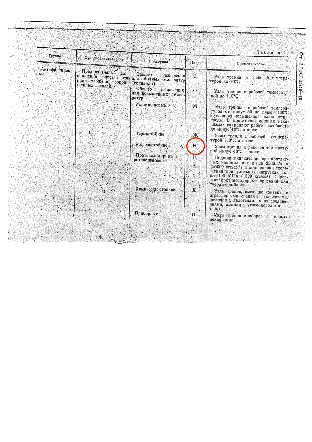 По мнению наших экспертов в Таблице 1 на странице 2 при переиздании данного стандарта была допущена опечатка: подгруппа смазки "Морозостойкие" должна идти с индексом "Н", как было указано в раннем издании.